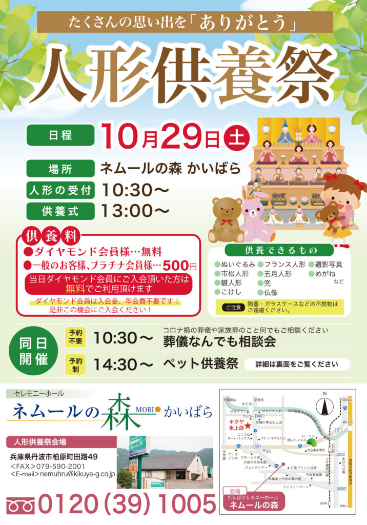 人形供養祭を行います【10月29日(土)ネムールの森 たんば】