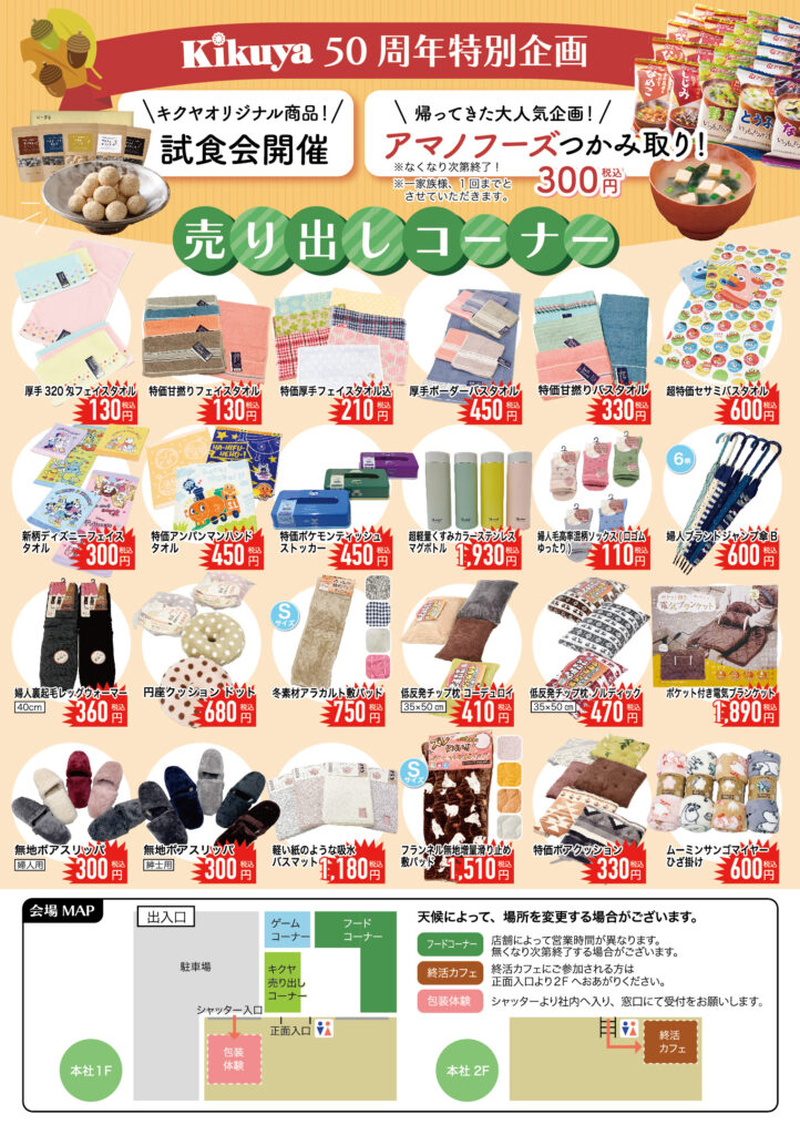 さて、先日はキクヤ氷上店にて50周年売り出しを開催し、たくさんの方にご来場頂きました!ありがとうございました!