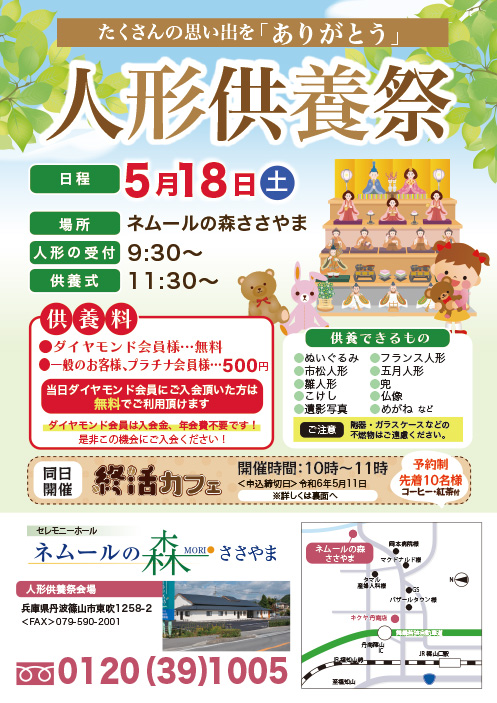 人形供養祭を行います【5月18日(土)ネムールの森 ささやま】