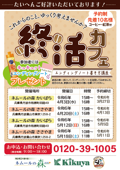 また同日開催として就活カフェを開催いたします。美味しいコーヒーや紅茶を飲みながら、終活の第一歩としてエンディングノートの書き方をレクチャーいたします。