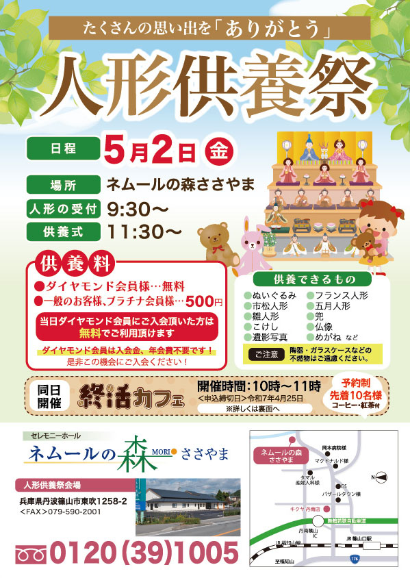人形供養祭を行います【2025年5月2日(金)ネムールの森 ささやま】